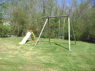 There is a large garden for sunbathing with loungers; a play area for children with swings and slide